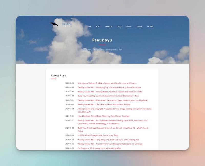 [@pseudoyu]$ { 💭 & 🐦 & 📝 & 🌟 & ▶️ & 🎵 & 📖 & 📺 & 🎮 } > /dev/telegram